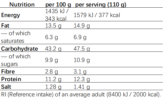 Pease note: The weight per serving refers to the weight of the bread (except loaf products).