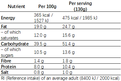 Pease note: The weight per serving refers to the weight of the bread (except loaf products).