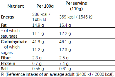 Pease note: The weight per serving refers to the weight of the bread (except loaf products).