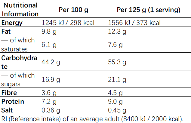 Pease note: The weight per serving refers to the weight of the bread (except loaf products).