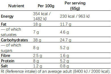 Pease note: The weight per serving refers to the weight of the bread (except loaf products).