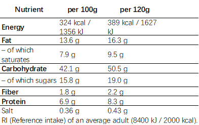 Pease note: The weight per serving refers to the weight of the bread (except loaf products).