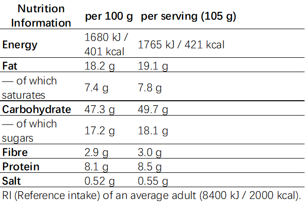 Pease note: The weight per serving refers to the weight of the bread (except loaf products).