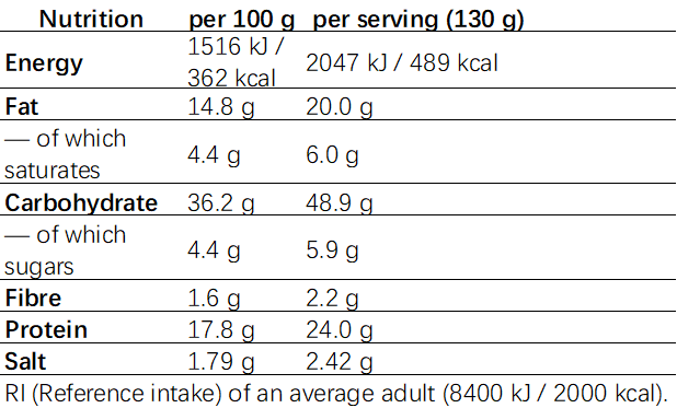 Pease note: The weight per serving refers to the weight of the bread (except loaf products).