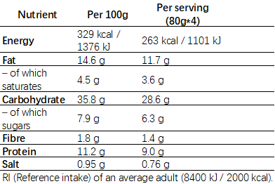 Pease note: The weight per serving refers to the weight of the bread (except loaf products).